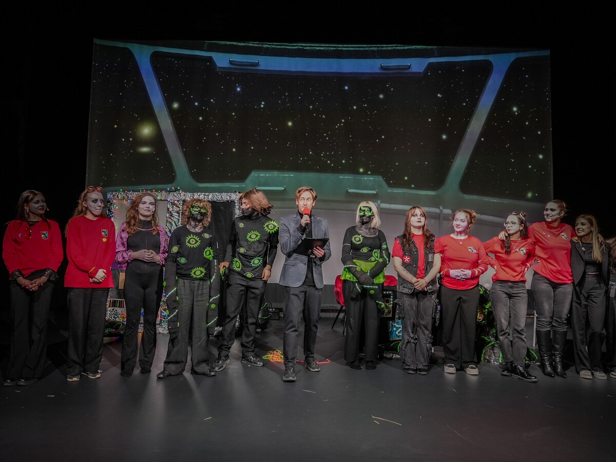 Spektakl 40 Eridani A Teatru bez Nazwy miał swoją premierę w Uniwersyteckim Centrum Kultury i Nauki, kończąc intensywny okres przygotowań i pracy zespołu. Wydarzenie zgromadziło liczną publiczność, a sala wypełniła się widzami, którzy wspólnie z twórcami wyruszyli w symboliczną, międzygalaktyczną podróż.