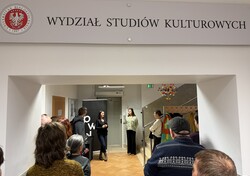 25 marca w Biurze Wystaw Kulturoznawczych, działającym przy Wydziale Studiów Kulturowych, odbył się wernisaż wystawy „Sąd Ostateczny” Katarzyny Jackiewicz. Wydarzenie miało wyjątkowo spójny, niemal „eseistyczny” charakter – zanim publiczność weszła w przestrzeń obrazów, została zaproszona do namysłu.