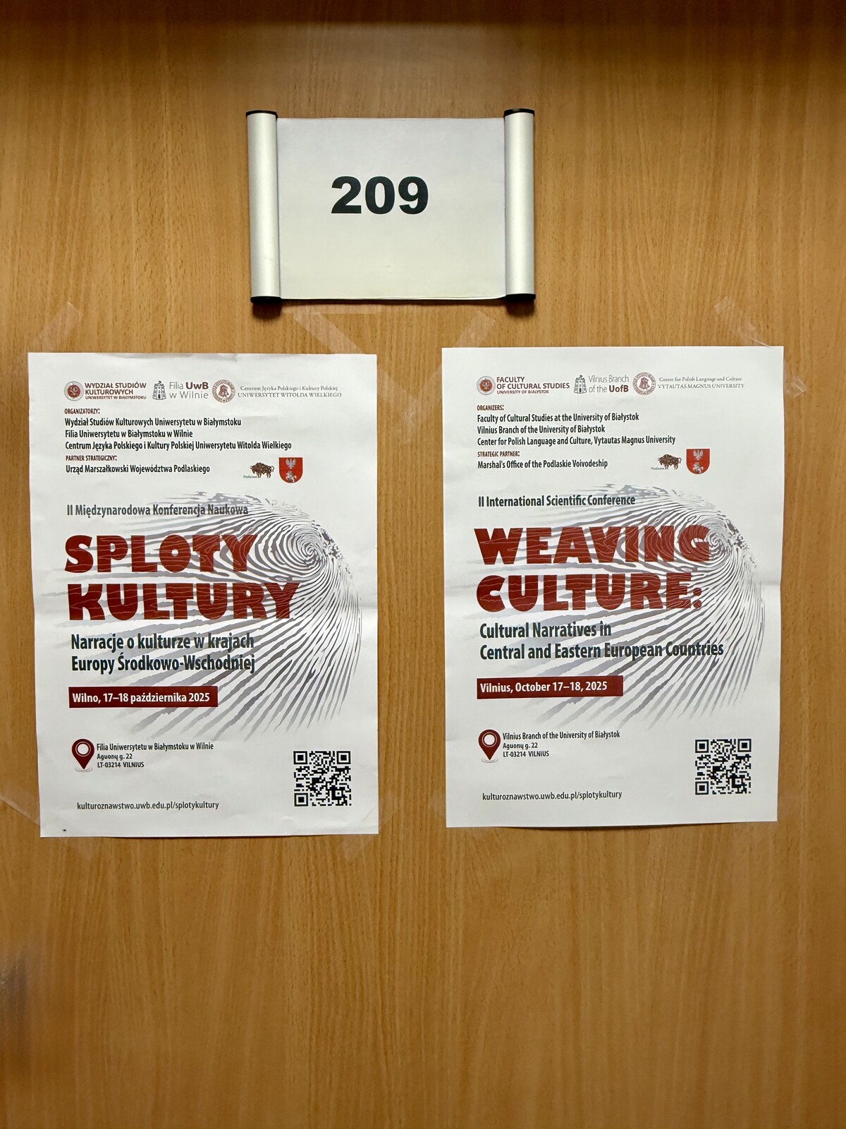 On 17-18 October, the second edition of the international scientific conference "Weaving Culture: Cultural Narratives in Central and Eastern European Countries" was held at the Branch of the University of Białystok in Vilnius. The conference was organised by the Faculty of Cultural Studies of the University of Białystok, the Branch of the University of Białystok in Vilnius, and the Center for Polish Language and Culture at Vytautas Magnus University. The event was attended by researchers, artists and students from Poland, Lithuania and other countries, creating a space for inspiring exchange of ideas, experiences and scientific contacts.